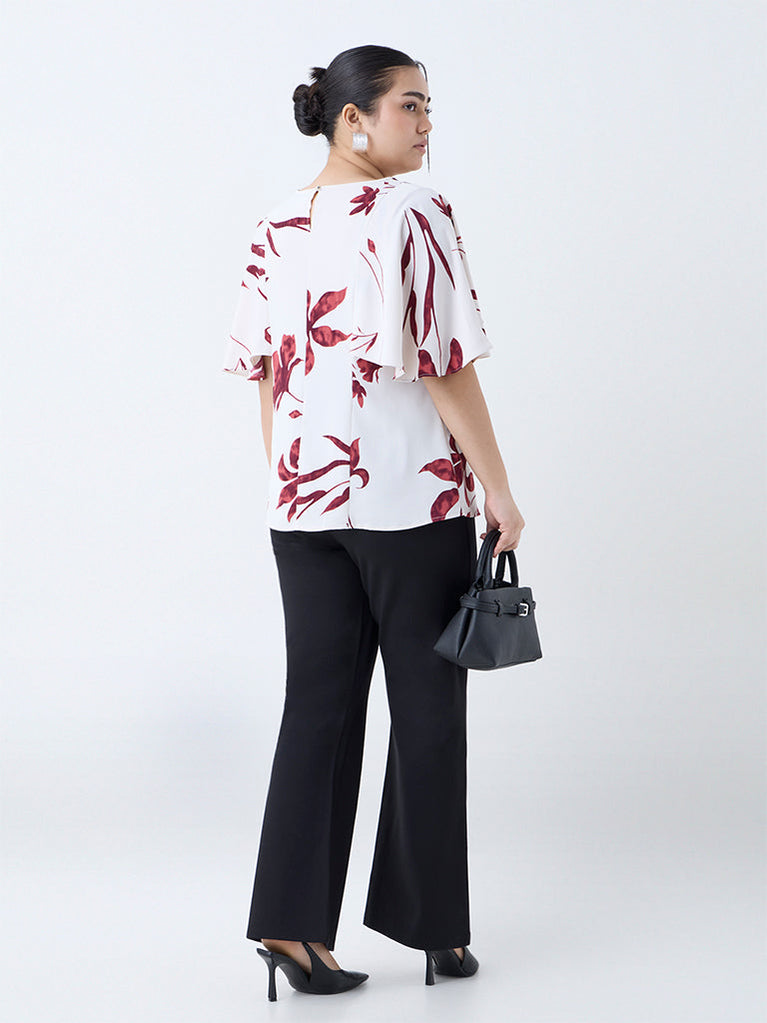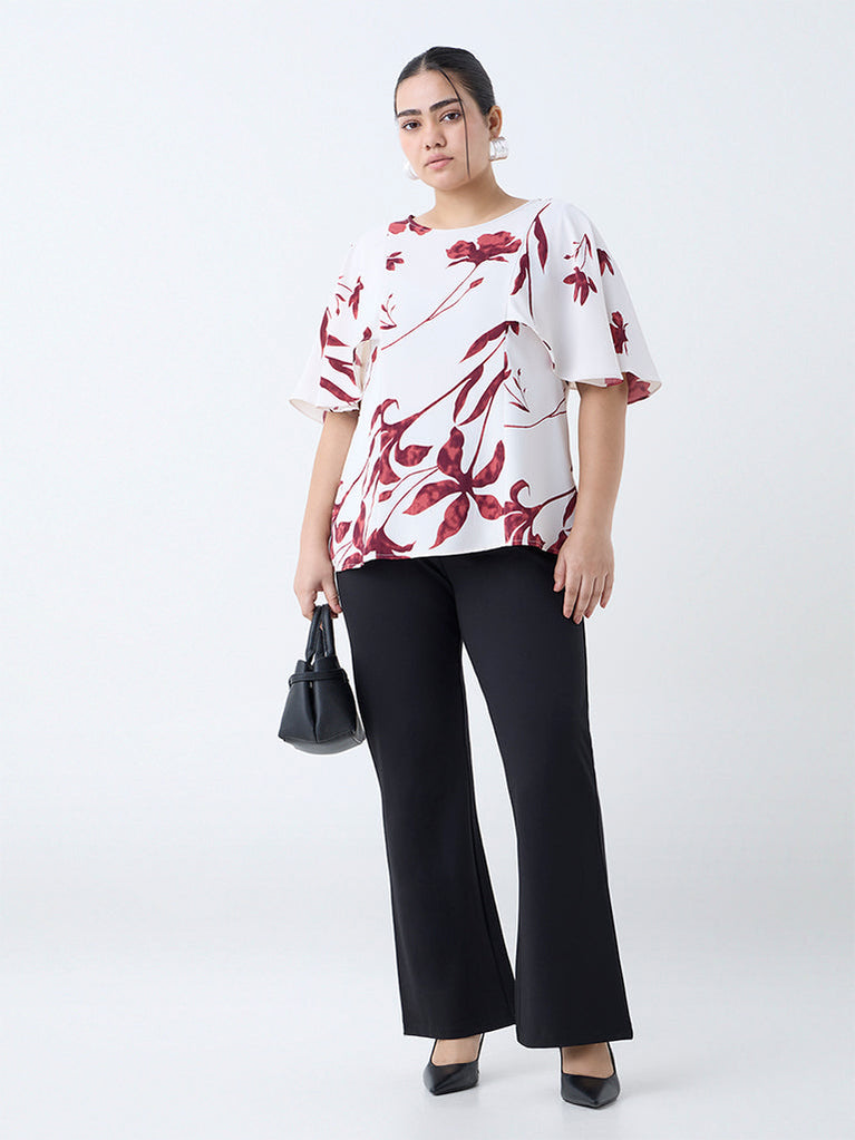 Gia Black Floral Pattern Mid-Rise Trousers