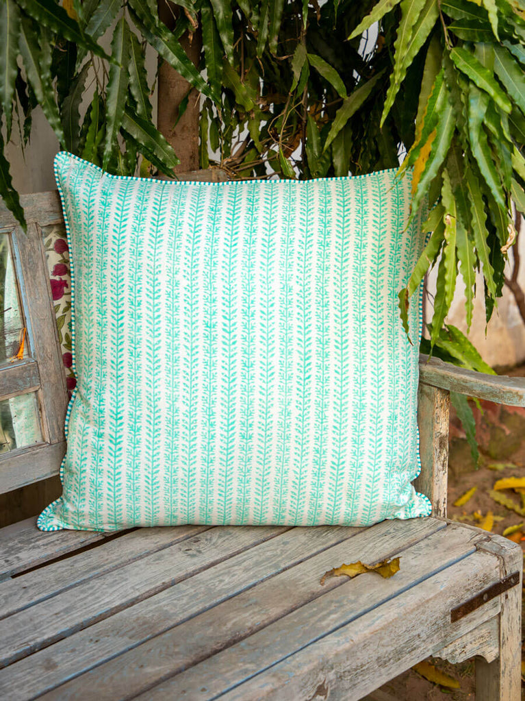 Fruits of Paradise Block Printed Cotton Cushion Cover - 16 Inch