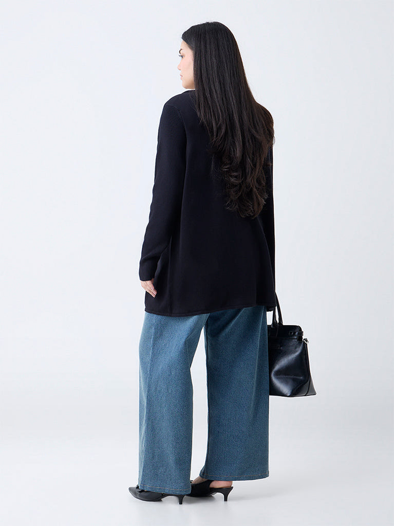 This black blouse from Gia leans into quiet sophistication with its minimal silhouette and luxurious hand feel. Crafted from a sumptuous fabric, it’s detailed with a collar and a gold-toned button placket that adds just the right touch of shine. Finished with full sleeves, it’s the kind of piece that speaks volumes without raising its voice.