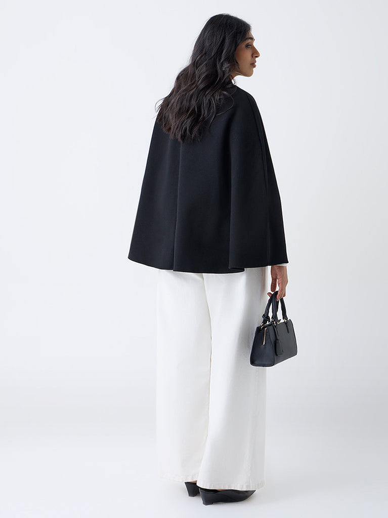 Add a statement finish to your winter ensemble with this black cape from Gia. Crafted from premium-blend fabric, it features a structured drape and metallic front buttons for a touch of refinement. A contemporary layer that offers warmth with a polished silhouette.