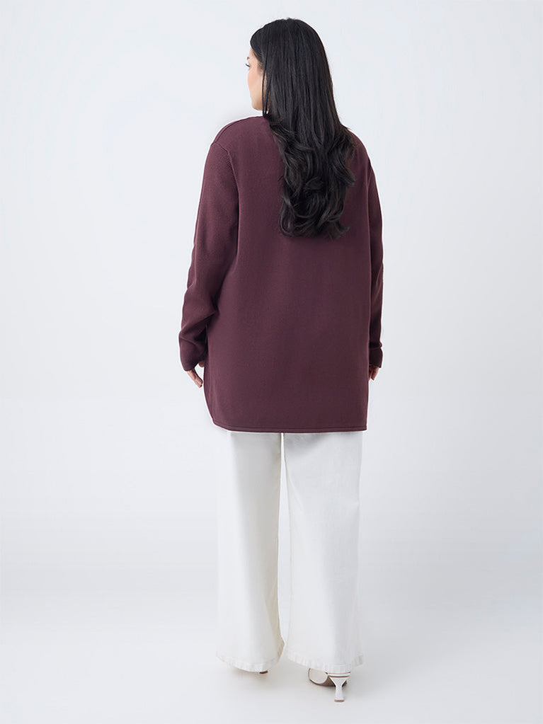 Gia presents this brown shrug designed with a ribbed open collar and full sleeves for a relaxed yet refined look. Crafted from a quality fabric, it offers a soft feel and versatile appeal, perfect for layering through the seasons.