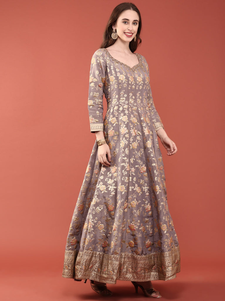 Embrace timeless elegance with this stunning Lilac Tissue Floral Digital Print Anarkali Set. Crafted from premium tissue fabric, this ensemble features an exquisite digital floral print in soothing lilac tones that brings sophistication to any occasion. The classic Anarkali silhouette flatters all body types with its graceful, flowing design, while the intricate floral detailing adds a touch of refined beauty. Perfect for weddings, festivals, or special celebrations, this set combines traditional craftsmanship with contemporary aesthetics.