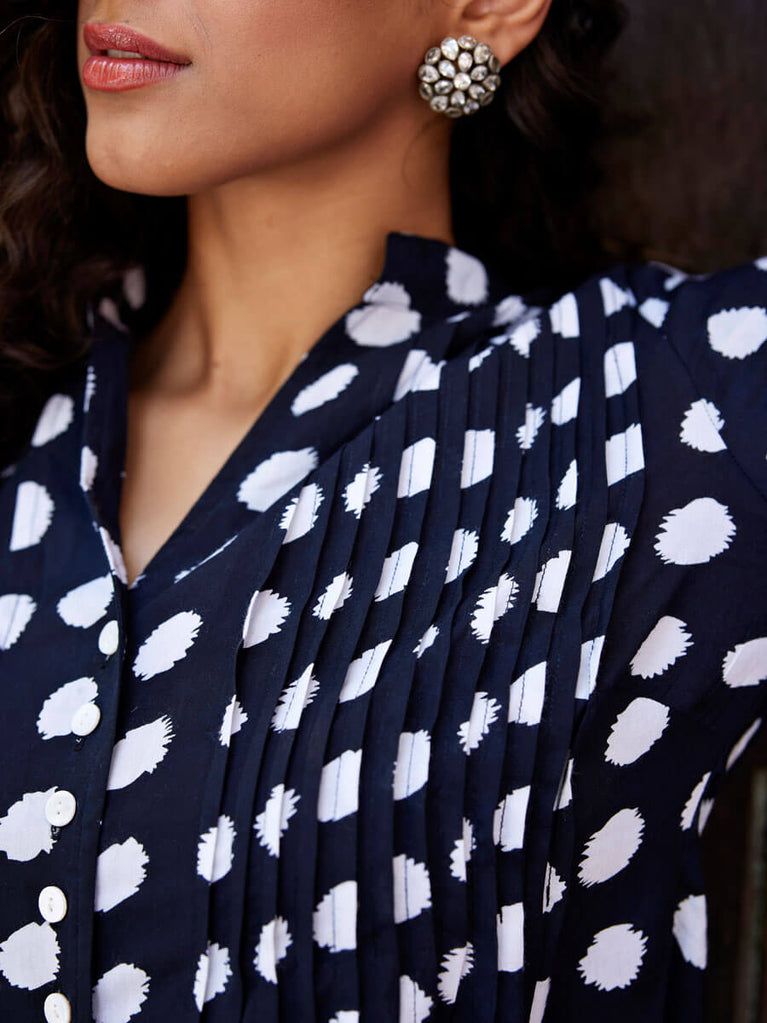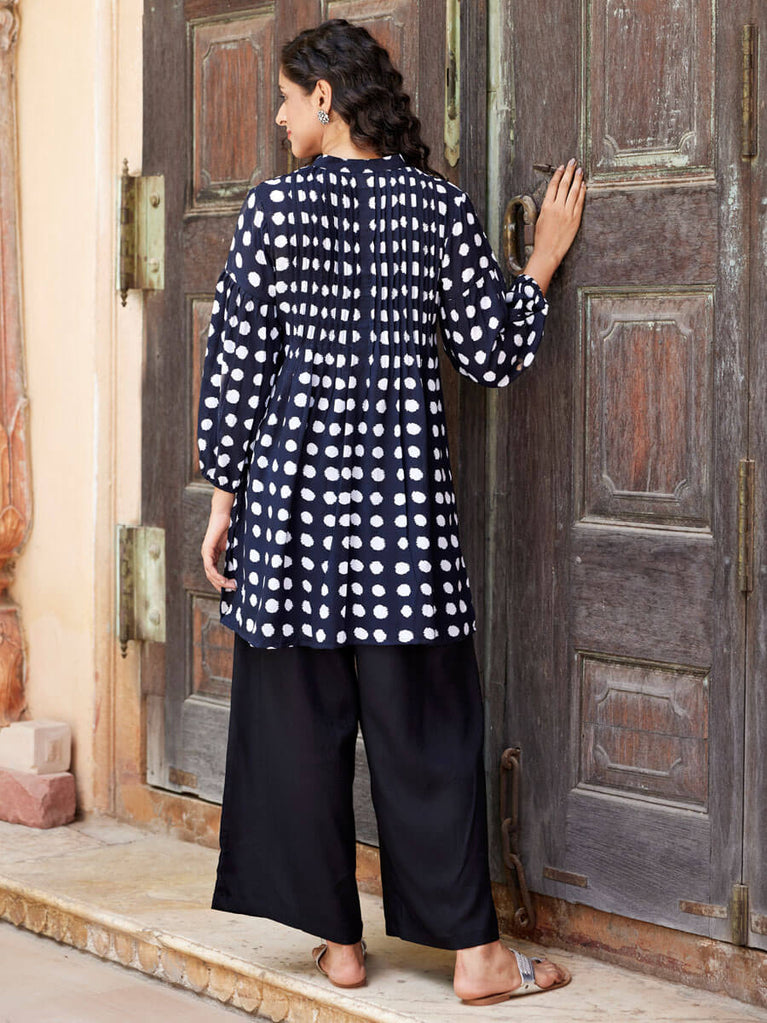Shiddat Black Hand Printed Pintuck Shirt Kurta