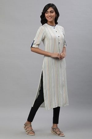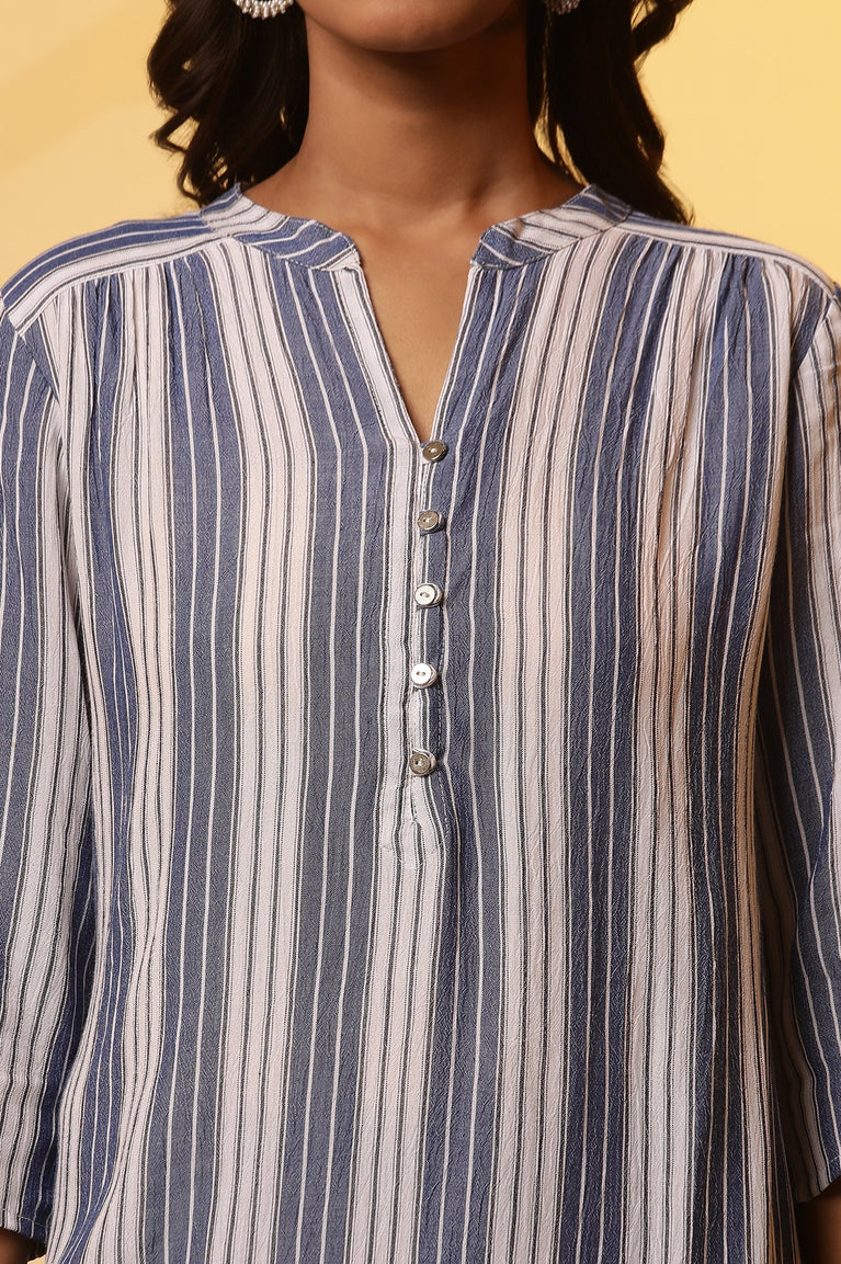 Blue and White Stripe Printed Casual Kurta