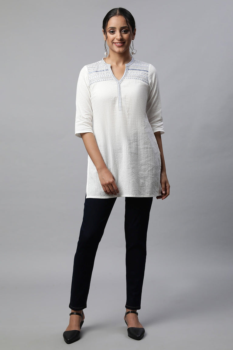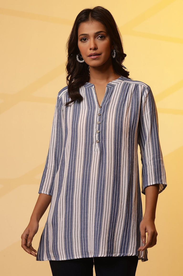 Blue and White Yarn-Dyed Kurti