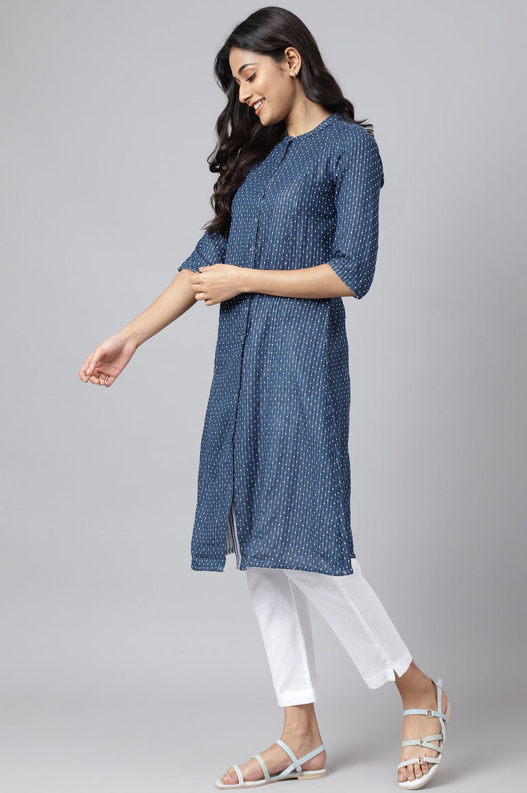 Simple yet chic! This floral print ocean wave kurta in round neck with button placket kurta has staright silhouette, side slits and three-quarter sleeves. Amph up your casual wardrobe with this pretty and comfortable kurta. You can style it for a casual day out, at office or while traveling.