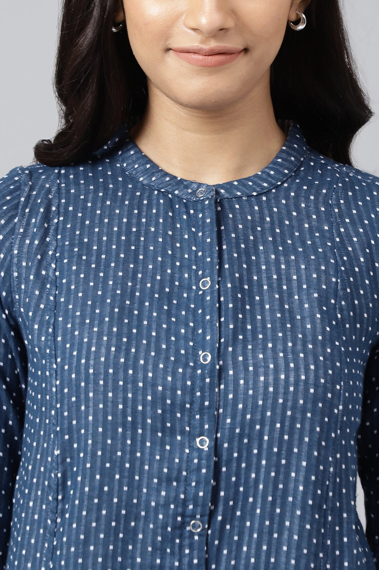 Step into a realm of fashion-forward elegance with our smart denim kurti. This masterpiece is designed to captivate attention and redefine sophistication. The round neck and half functional placket adorned with contrasting buttons and piping detail add a touch of refined luxury, setting you above the crowd. Embrace the art of versatility with the roll-up sleeves, allowing you to effortlessly transition from a poised and polished look to a more relaxed and chic style. The rounded hem delicately accentuates femininity, imparting an enchanting aura that leaves a lasting impression.