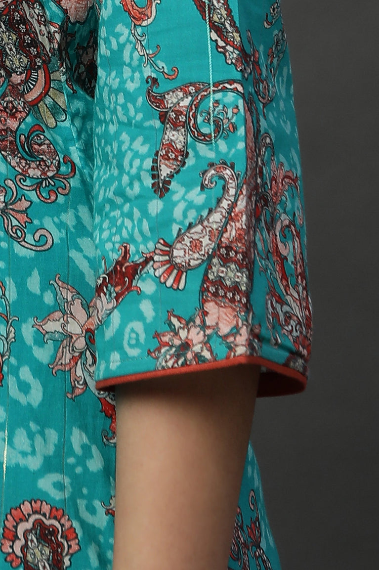 Blue Thread Work Cotton Blend Straight Kurta and Palazzo Set