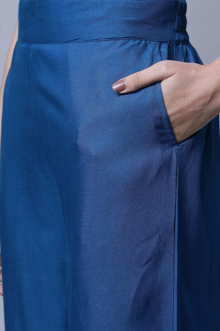 Blue Printed Flared Cotton Salwar With Elasticated Waistband