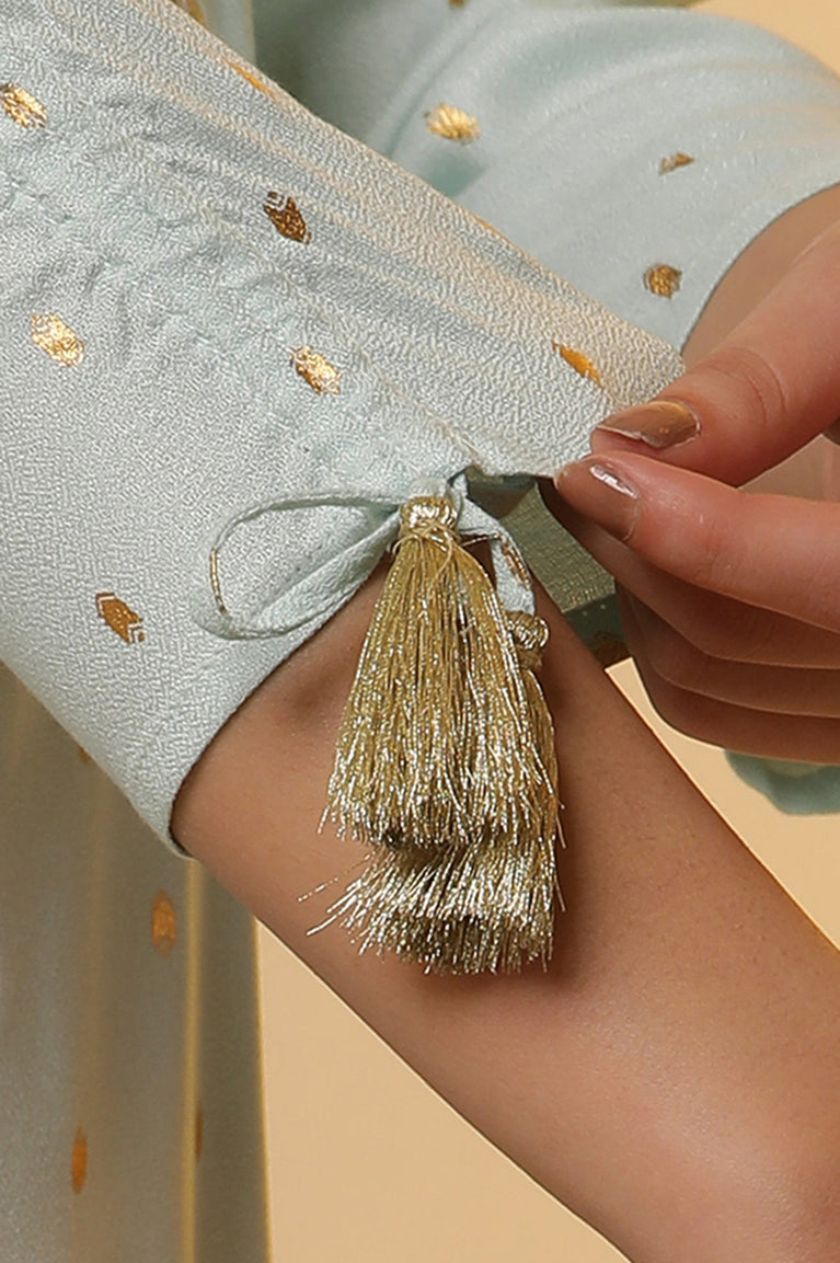 Elevate your daytime festivities with our intricate embroidered kurta in a fresh tone of blue. It has minute dobby looking print with enriches the look of the garment.