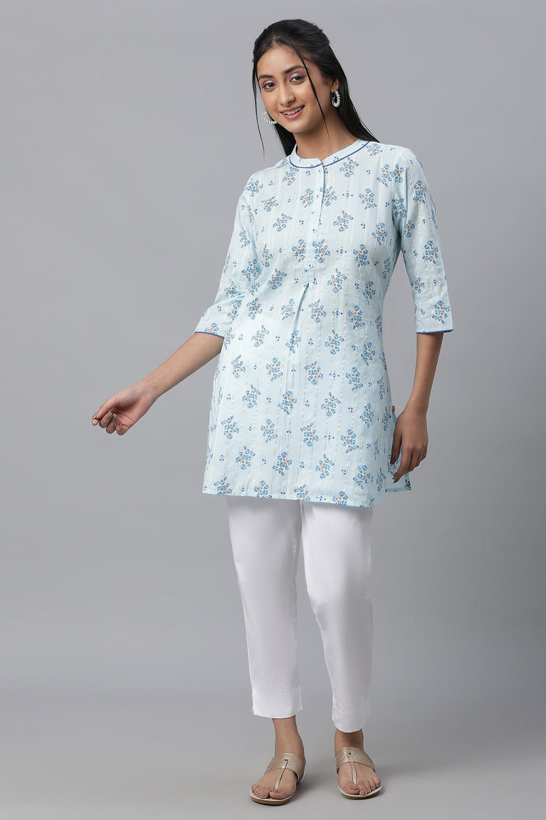 Blue Floral Printed Short kurta