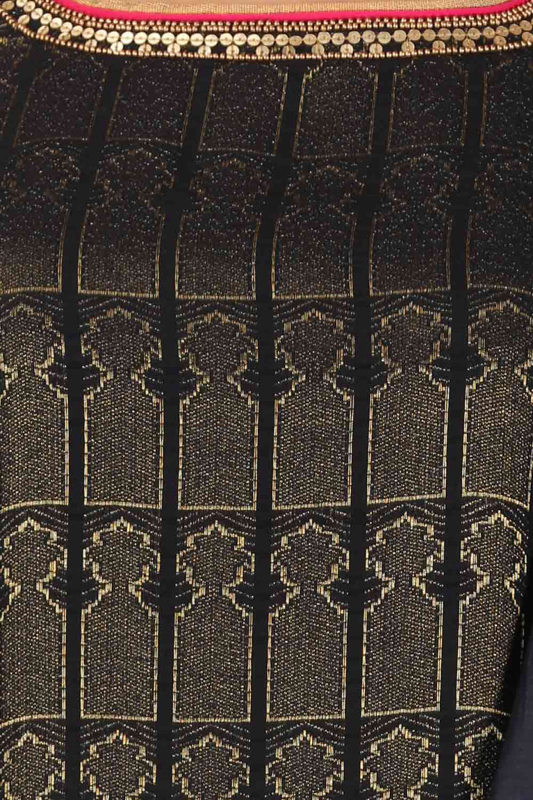 Style Your Casual Day With This Chic Aurelia Set. The Set Has Blue Jacquard kurta In Straight Silhouette And Has Round Neck. It Is Paired With Denim Jeggings.