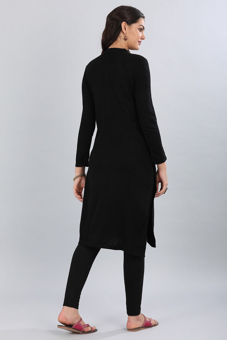 Black Mandarin Neck Yarn-dyed Winter kurta