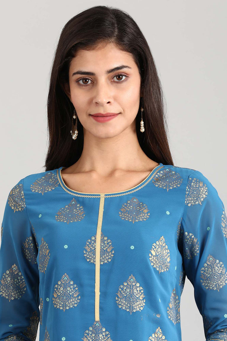 Blue Foil Printed Festive Kurta