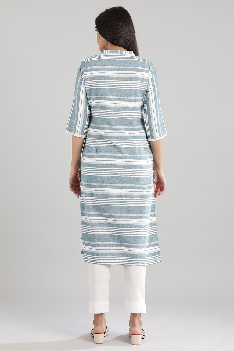 Blue Yarn-dyed Round Neck kurta