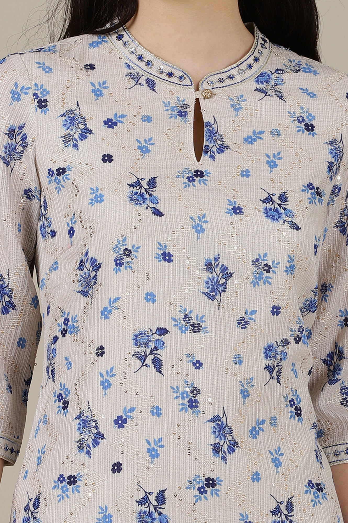 Beige Floral Printed with Zari work Straight Kota Kurta