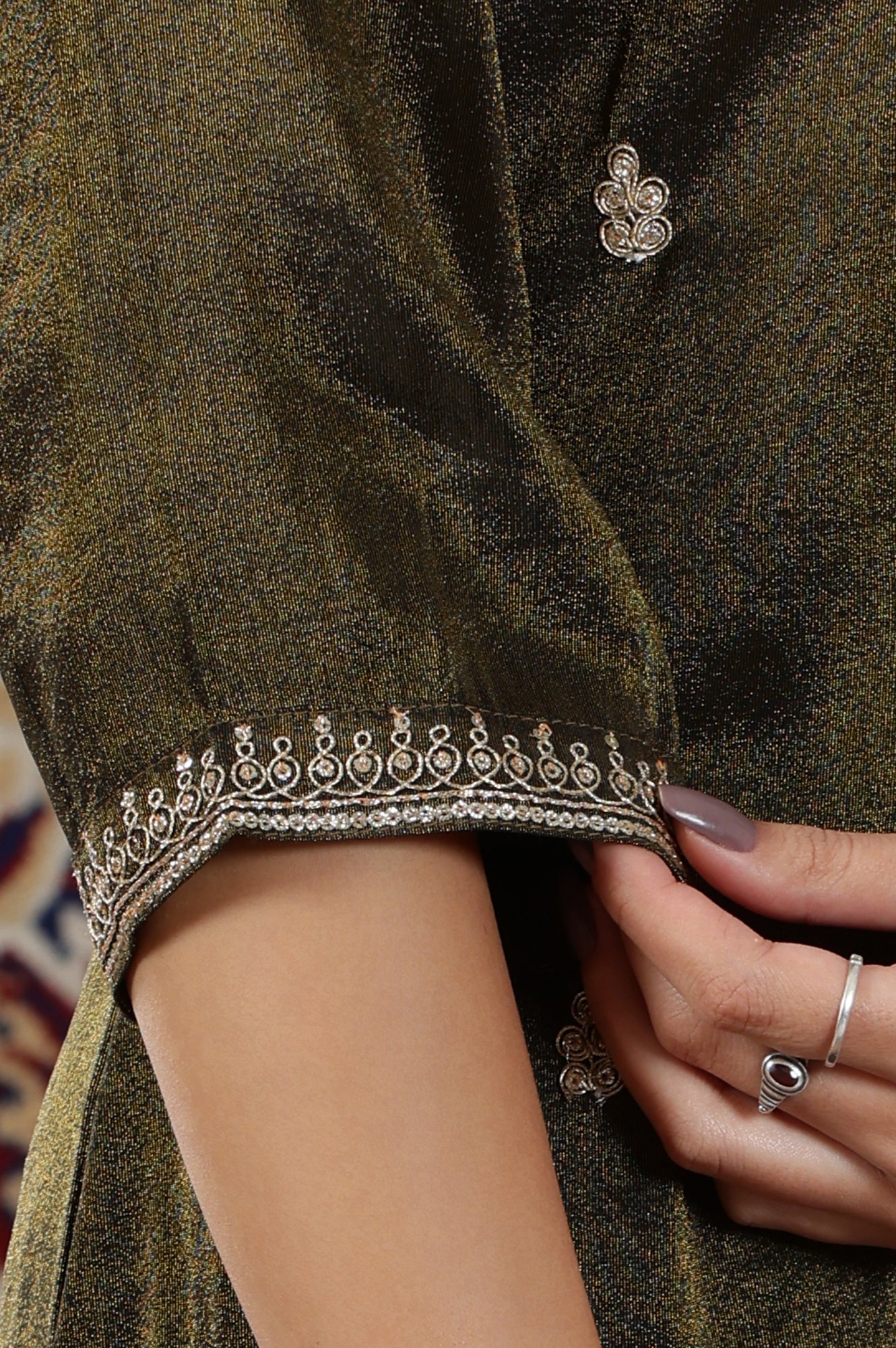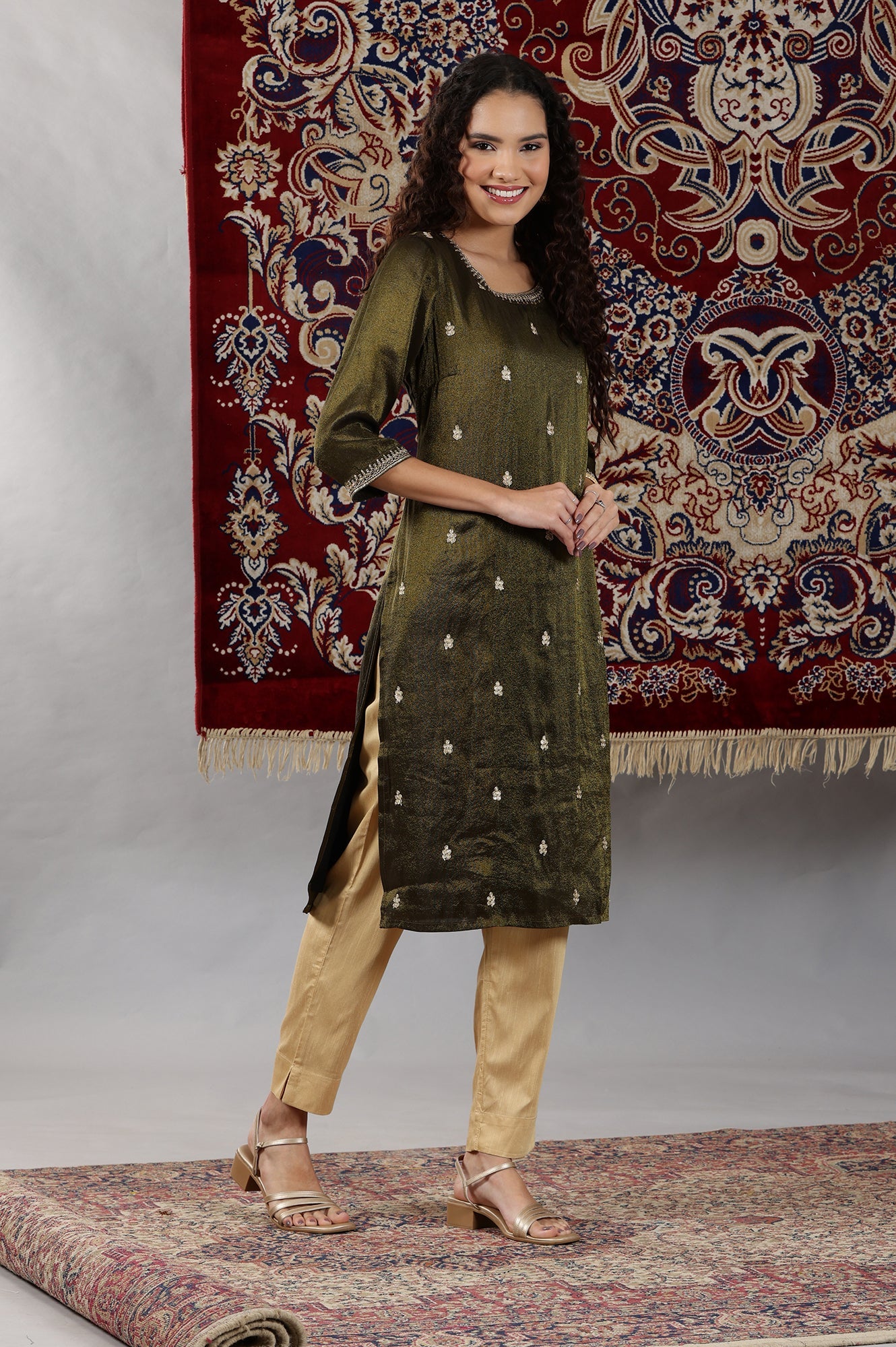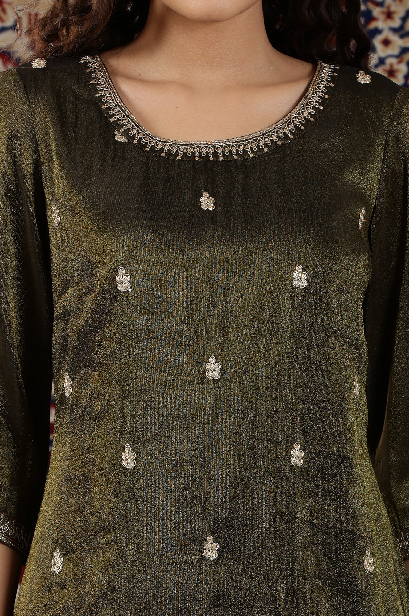 Black Viscose Tissue Straight Kurta with Embellished Neckline