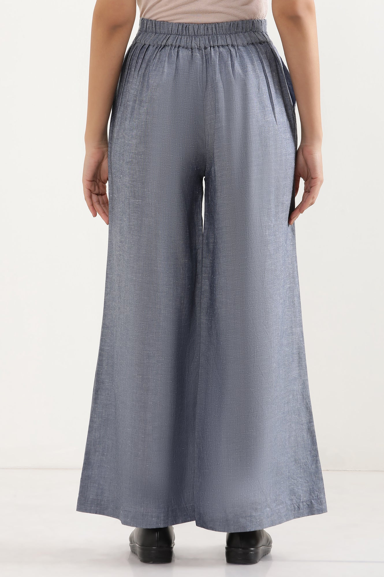 These pintuck denim flared pants feature a functional tie detail in the front. These pants have two side seam pockets to keep youe essentials. The garment goes thru an additional denim wash to give it extra softness and a fluid fall that makes it perfect for and any casual occasion or all-day wear.