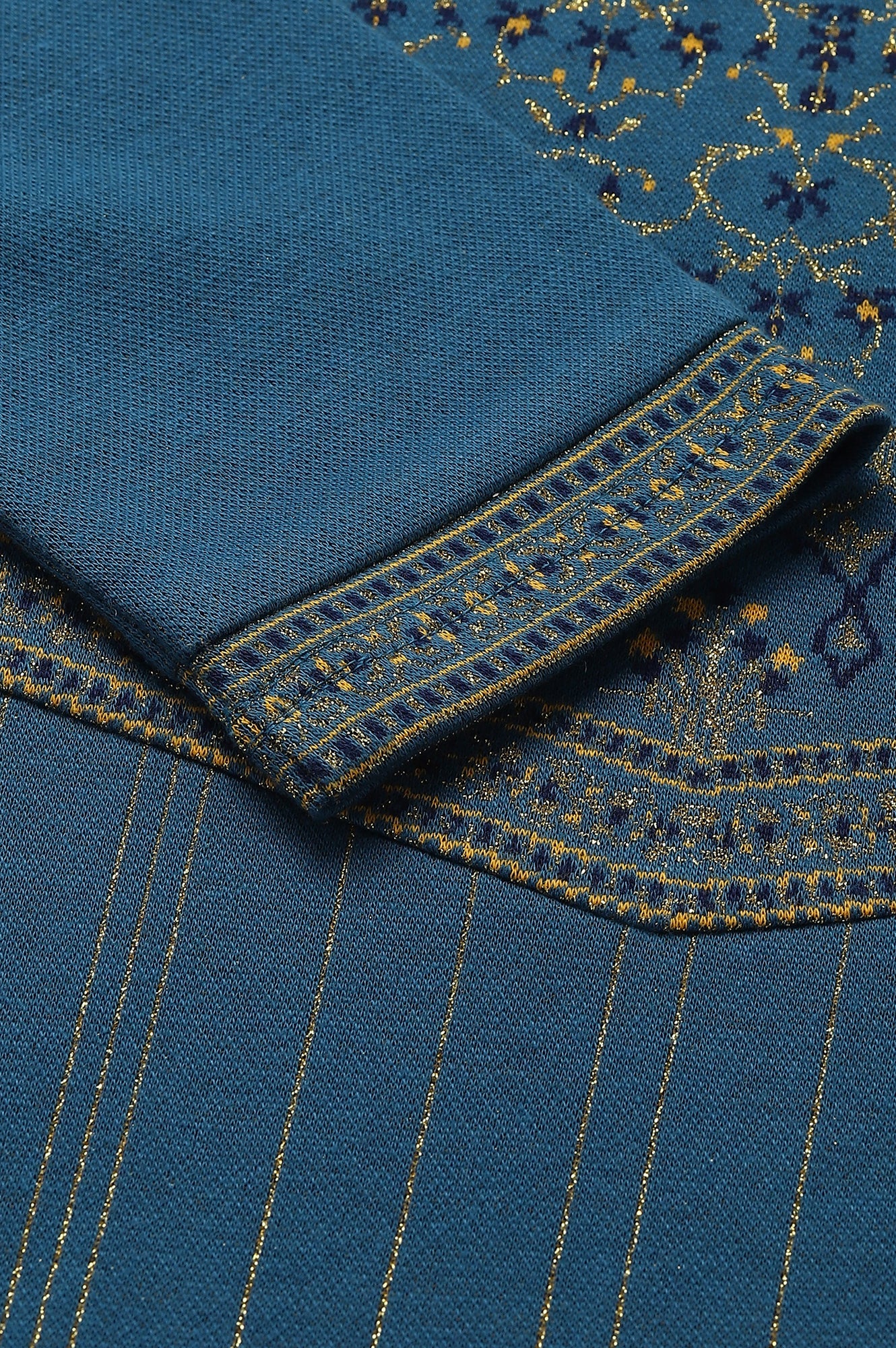 This festive season treat yourself to this beauty. Tailored in jacquard fabric with gold lurex and vibrant accents, this kurta incorporates a scalloped jaal connected with thick variegated lurex stripes. You can never go wrong with this trendy piece.