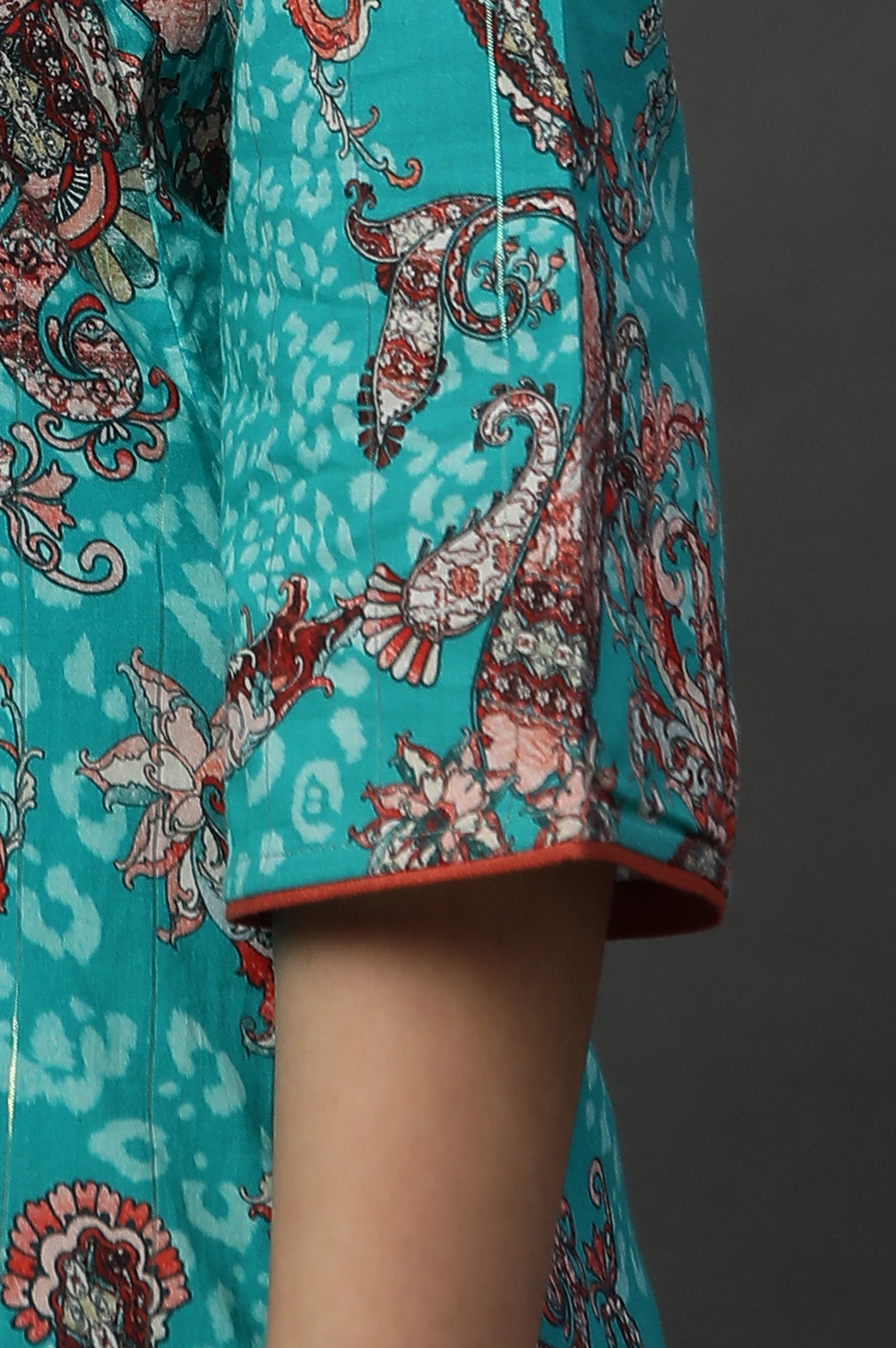 This coord set is the perfect example of season's trending love for unconventional and bold prints. Wear this piece and get ready to turn heads around you. The contrast minimal detailing of lace on neck and sleeves make this a must have in your collection