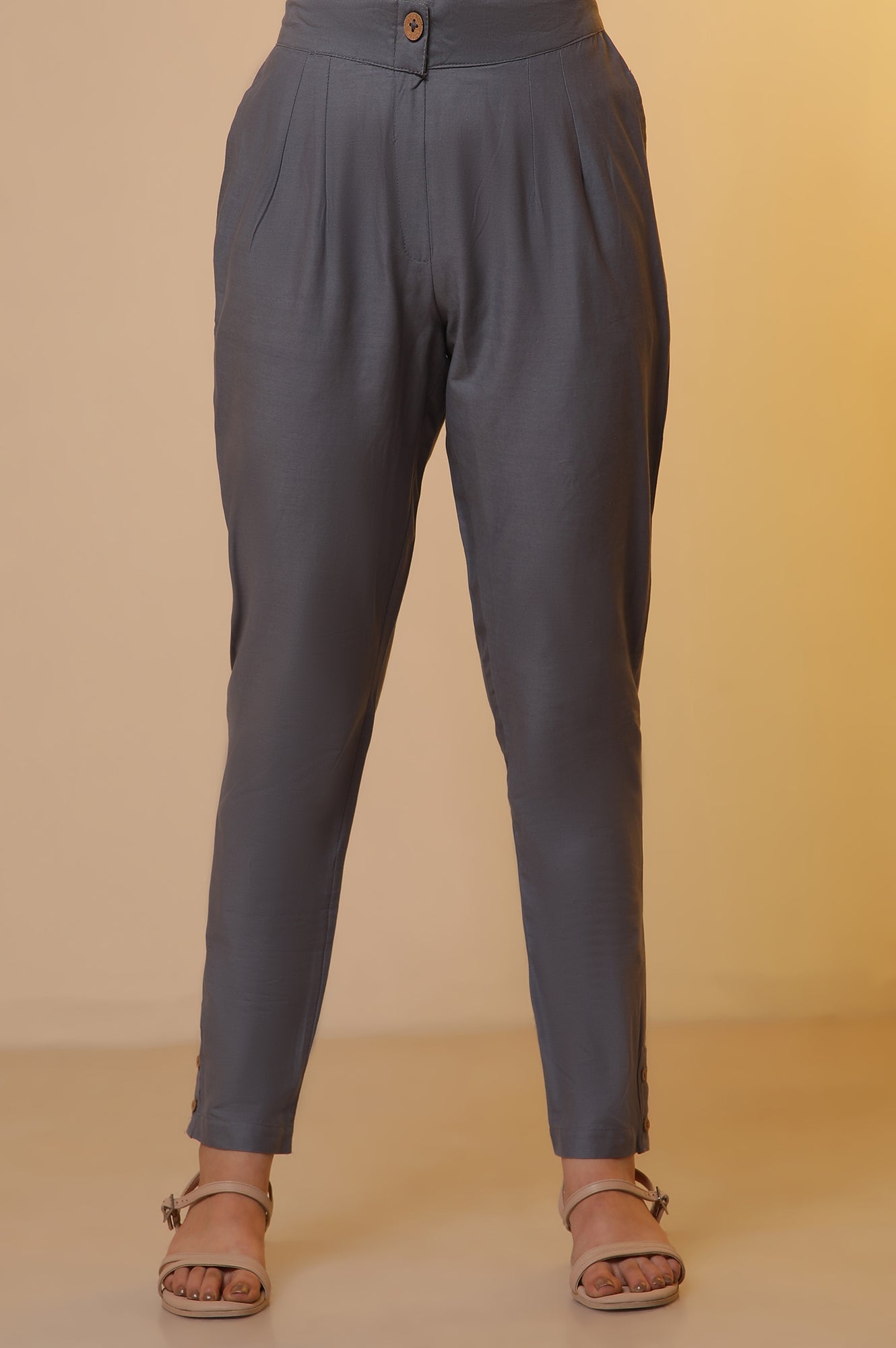Effortlessly stylish, this sleeveless straight kurta has a mix of gingham checks and dobby in the front. It has a modern neckline that features an overlapped band collar. The kurta is paired with contrasting grey straight fit trouser pants.