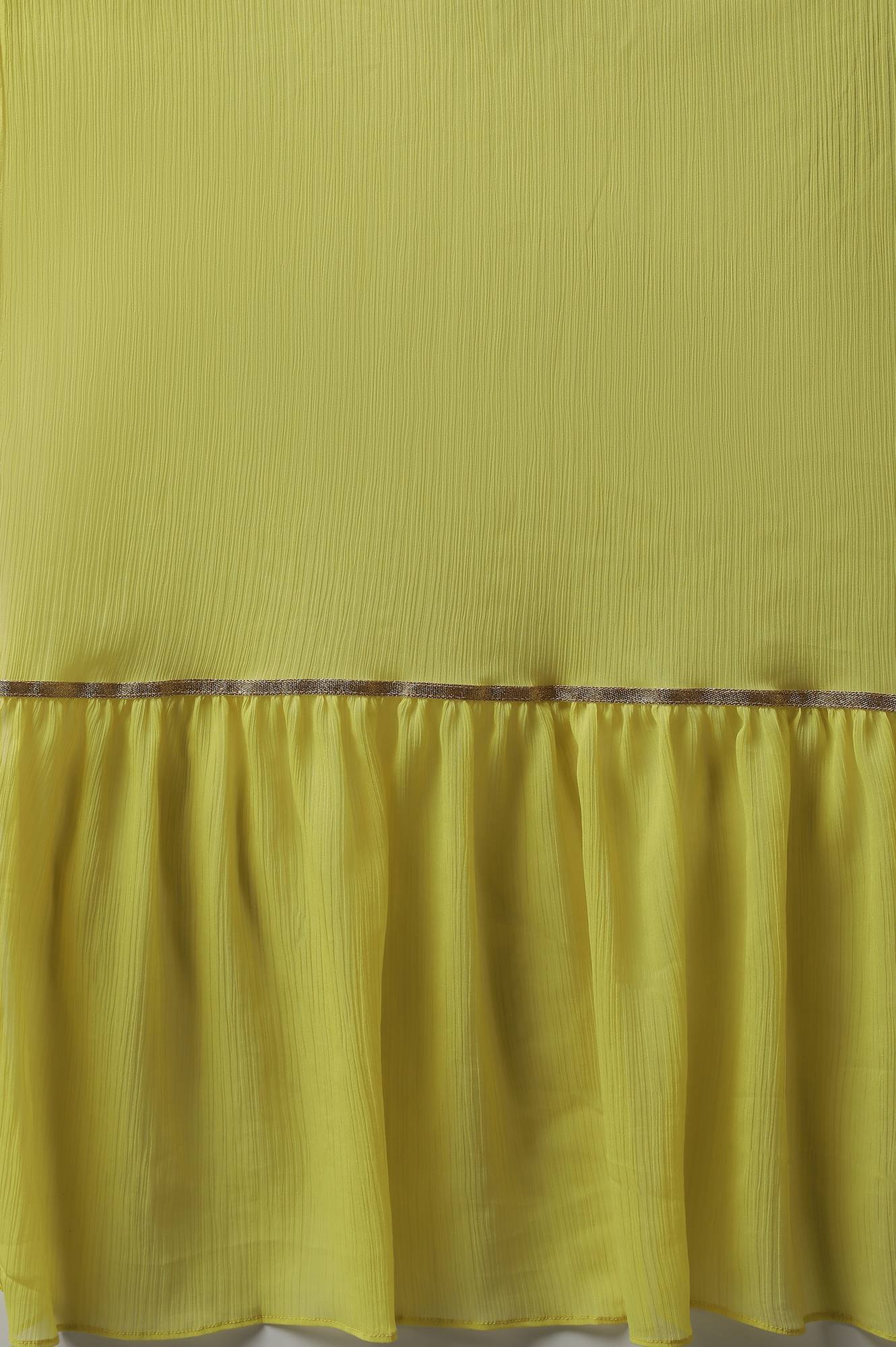 Get Ready For A Day Event In This Pretty Aurelia Set. The Set Includes Blue Printed kurta And It Is Paired With White Flared Skirt And Yellow Dupatta.