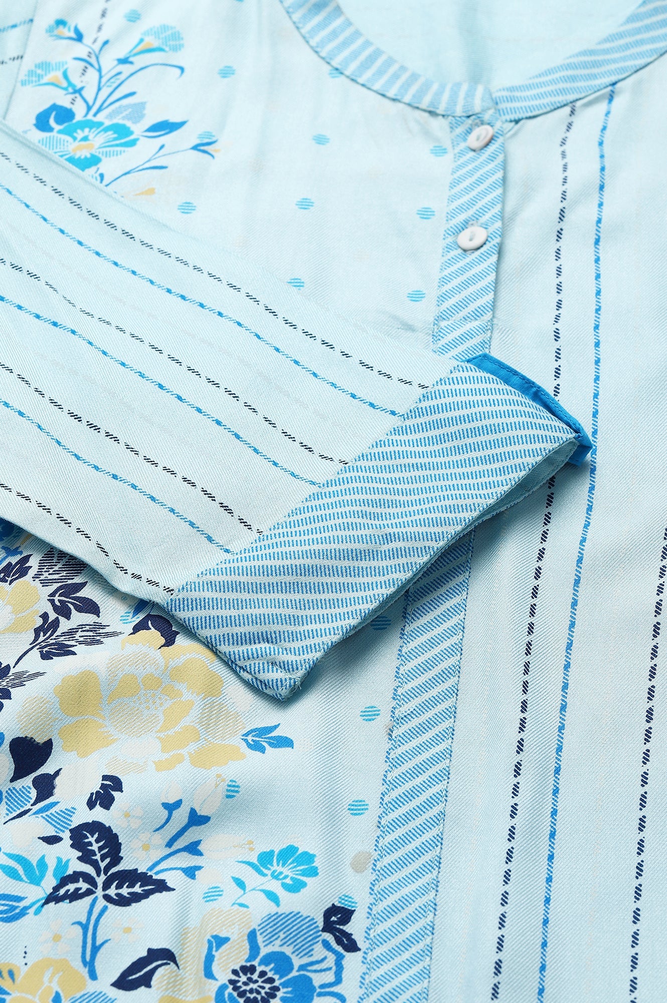 Love prints? Make a statement with our asymmetrical placement printed kurta that is highlighted with a mix of bold floral motifs and polka dots.