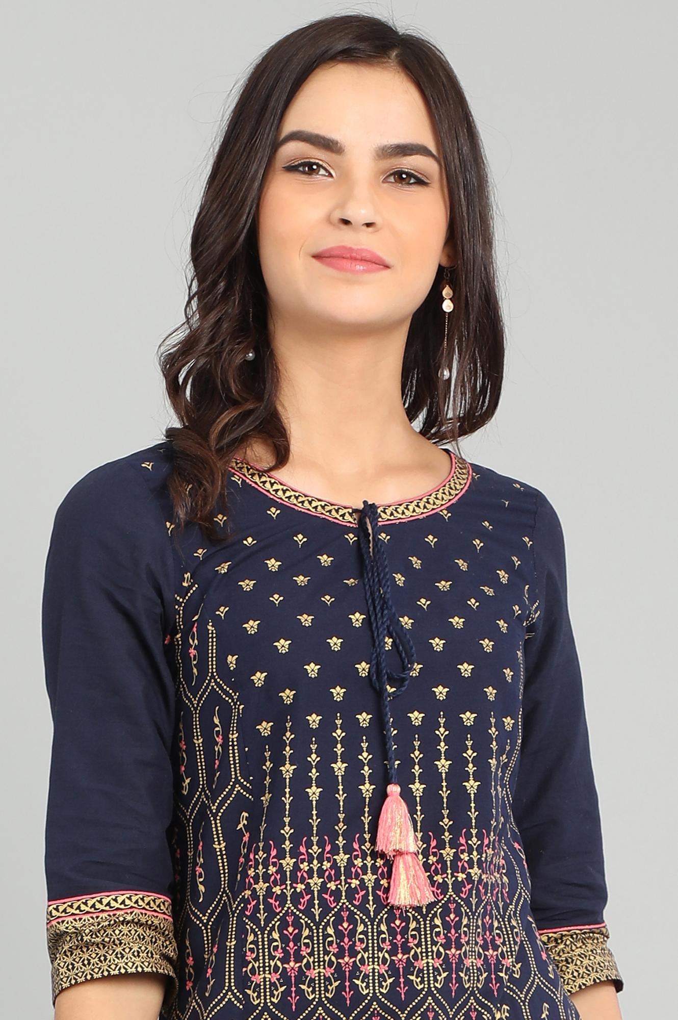 Blue Round Neck Printed kurta