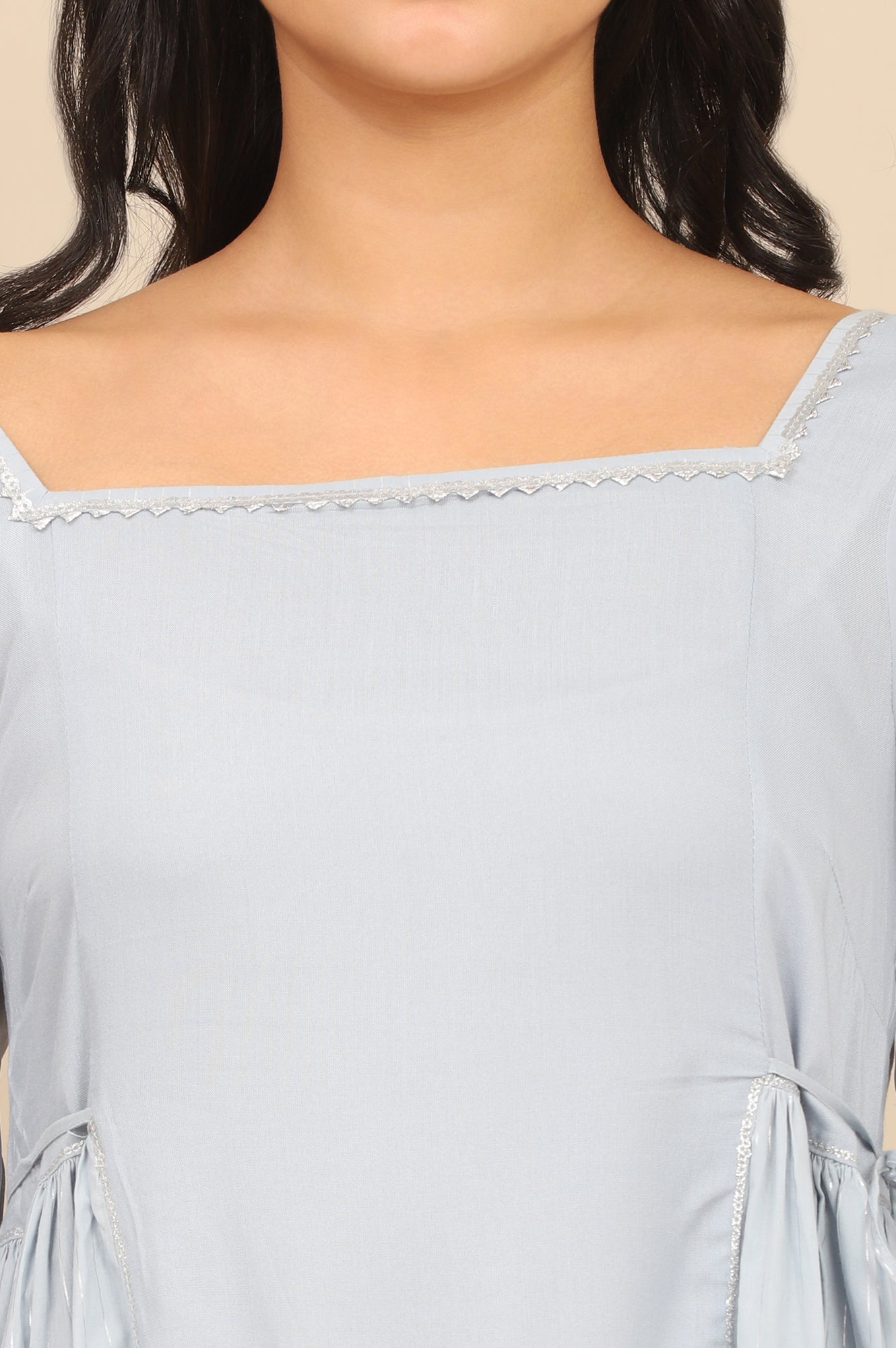 Blue Sequined Side Gathered Flared Kurta and Leggings Set