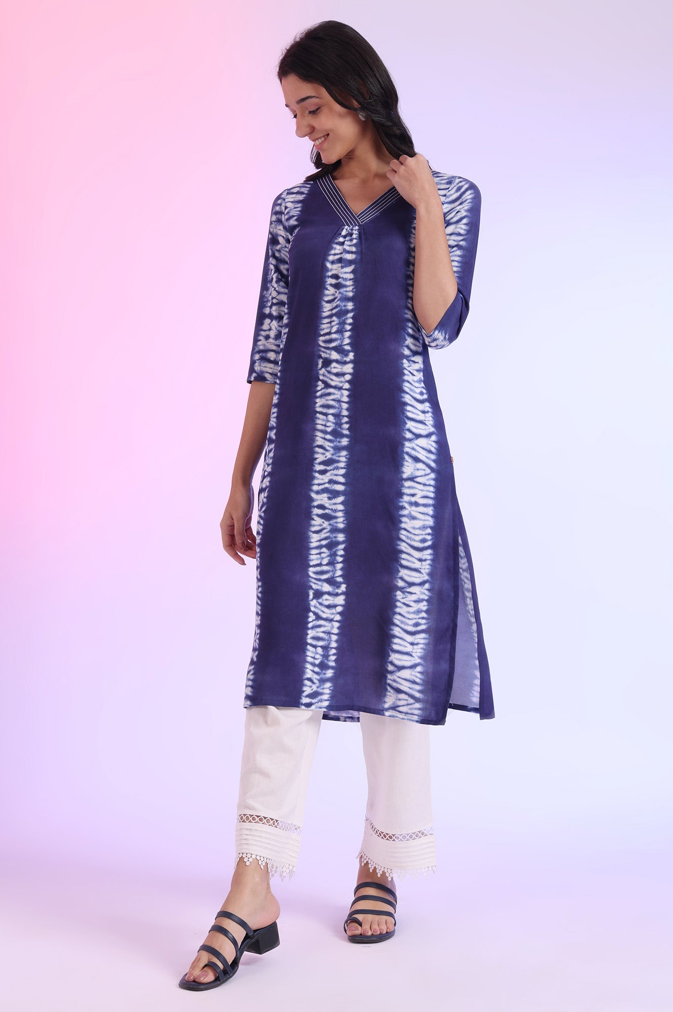 Blue Shibori Printed Thread Embroidered Straight Kurta