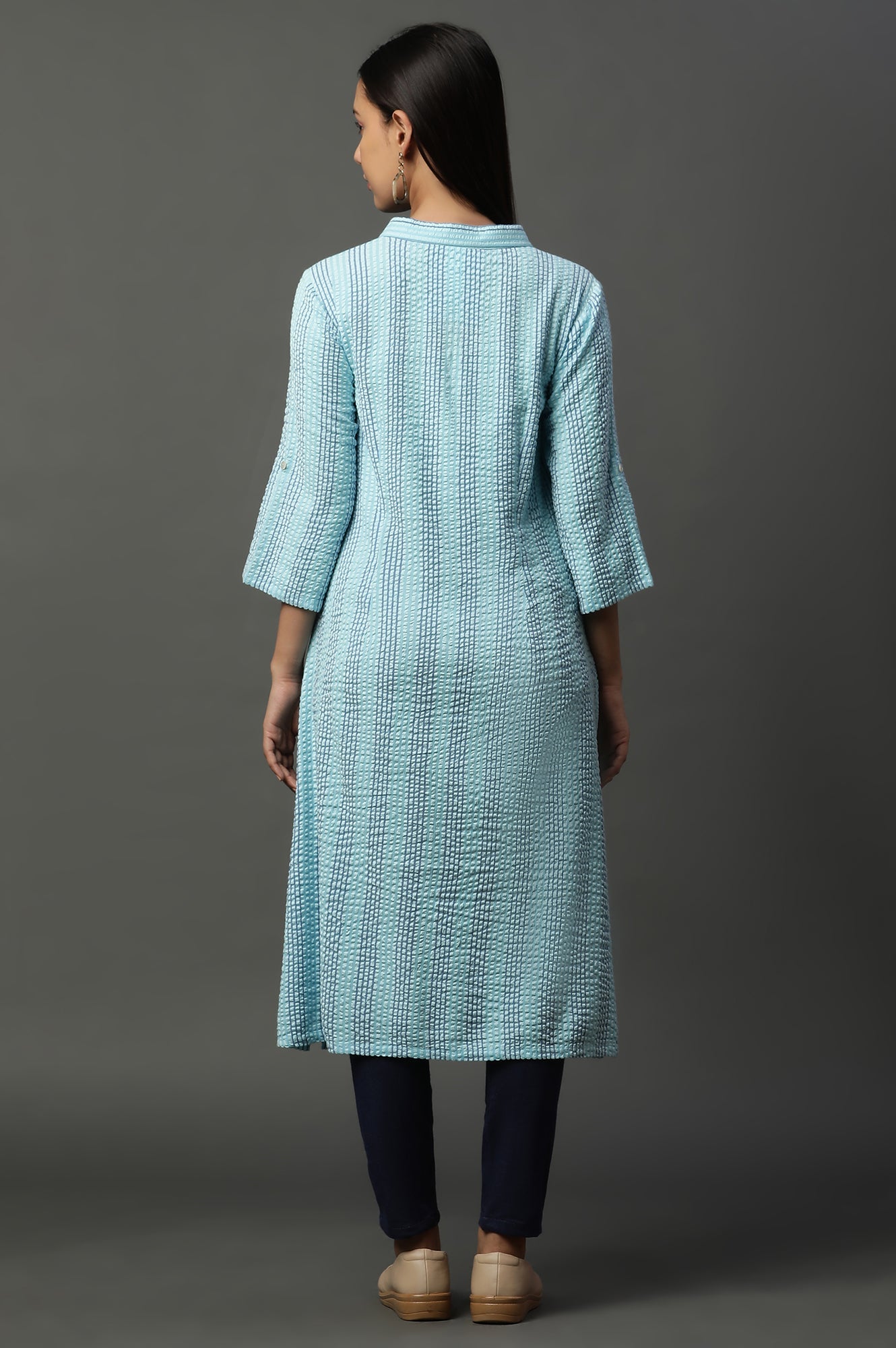 Blue Shirt Collar Seer Sucker Kurta