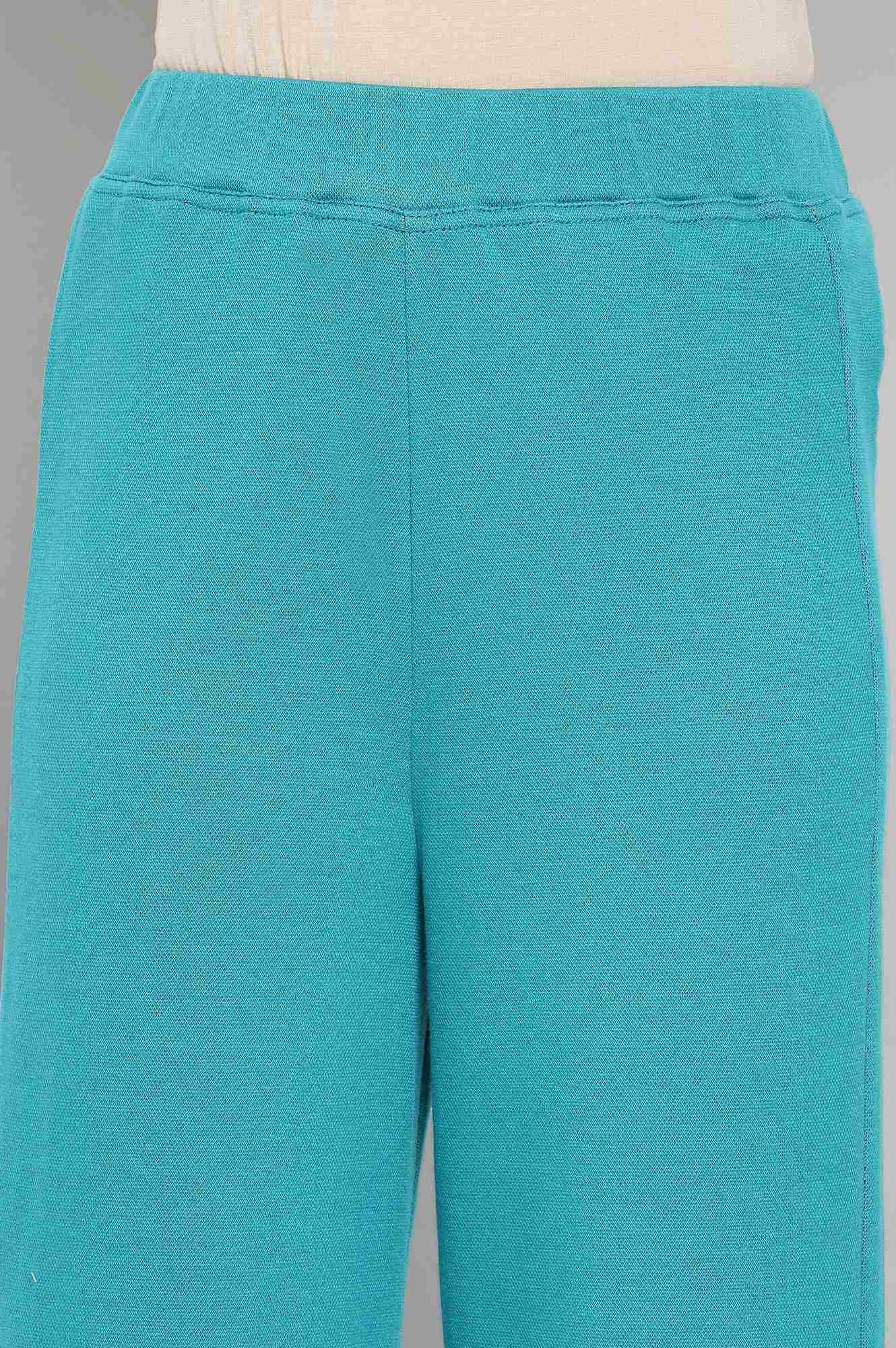 Slay this winter in aqua blue solid palazzo pants. The palazzos have mid-rise, elasticated waistband and border at hem.