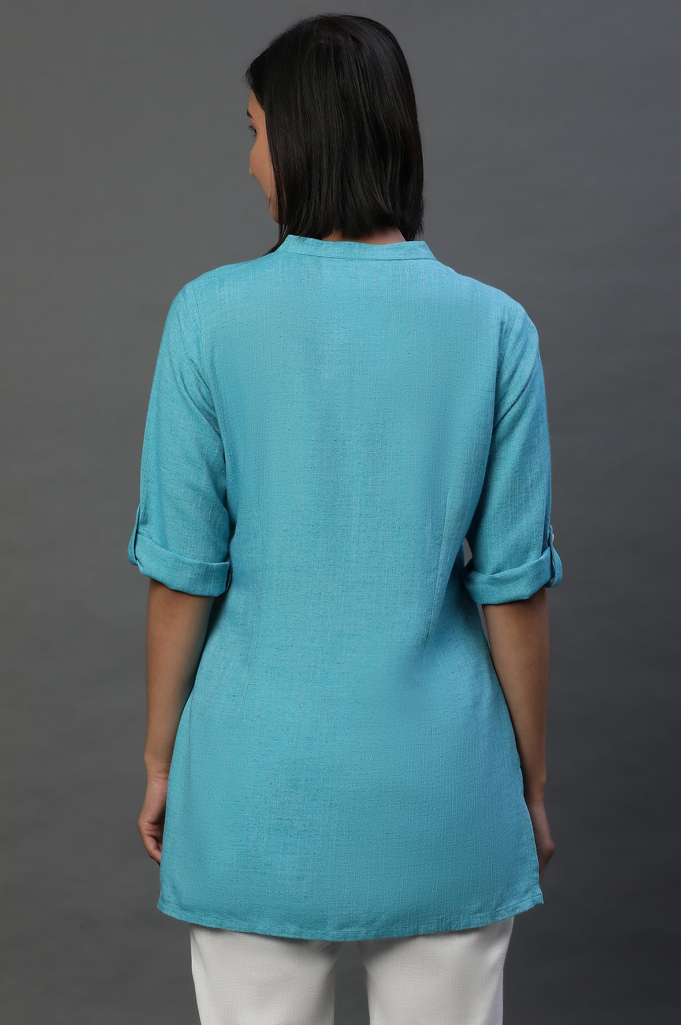 Blue Yarn-Dyed Solid Kurti