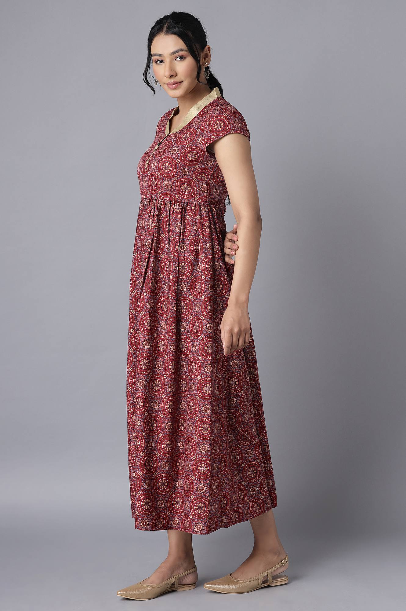 Brick Maroon Ethnic Dress