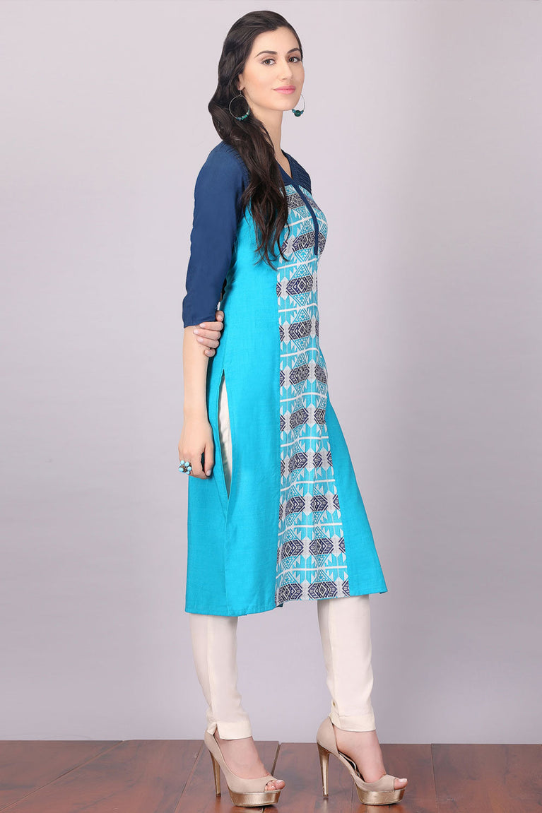 Blue Printed 3/4 Sleeve kurta