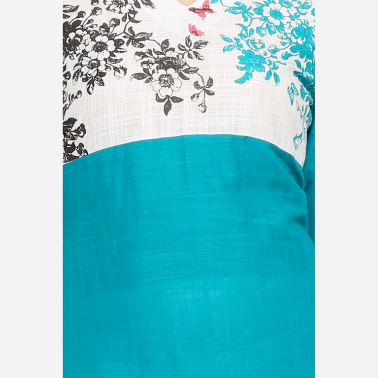 Blue Floral Print 3/4 Sleeve kurta