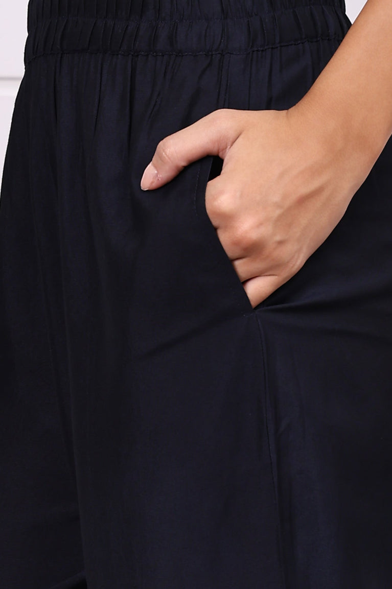 Celebrate tradition with this blue jacquard kurta set featuring intricate ethnic motifs and delicate hand work. The straight kurta is paired with flowing palazzos and a complementary dupatta, blending textural richness with cultural charm. Ideal for festive evenings or special events, the hand embellishments and woven patterns elevate the look beyond the everyday.