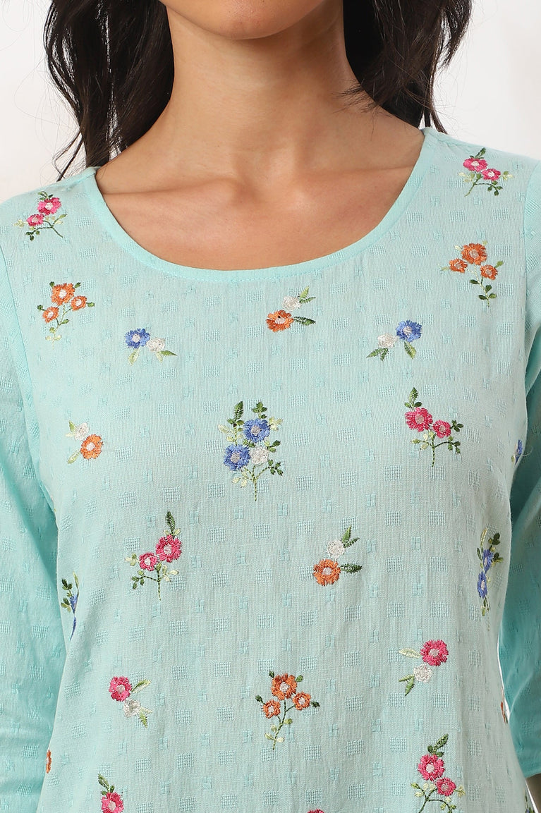 Discover the perfect blend of comfort and style with this women's Aurelia blue kurta. Crafted from pure cotton, this fusion-inspired piece is ideal for casual occasions. The three-quarter sleeves and round neckline offer a classic look, while the below-knee length and straight cut create an elegant silhouette. The woven construction technique ensures durability, and the zari detailing adds a touch of sophistication. The slit detail provides ease of movement, making it perfect for everyday wear. This kurta combines traditional elements with modern design, making it a versatile addition to your wardrobe. The 100% cotton composition guarantees breathability and comfort throughout the day.