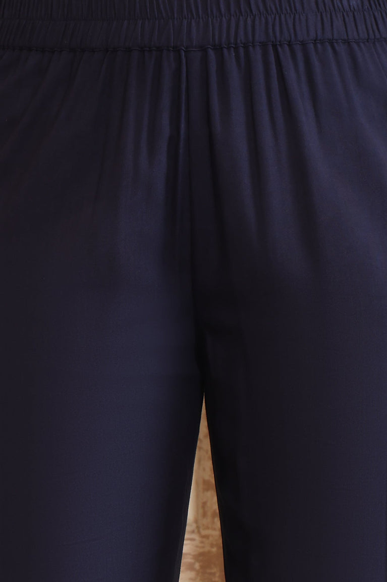 Blue solid straight fit palazzos with elasticated back, striped detail and tie-up detail.