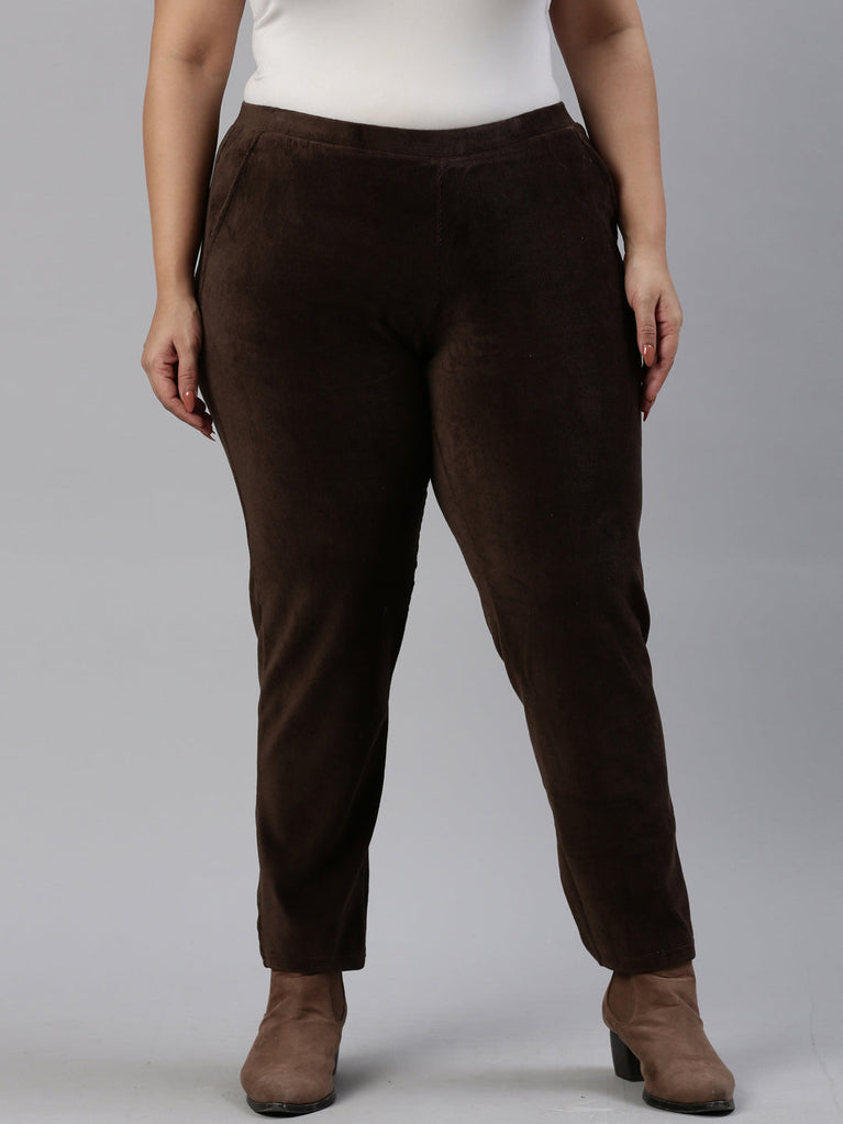 Dark Brown Cotton Polyester Corduroy Jeggings