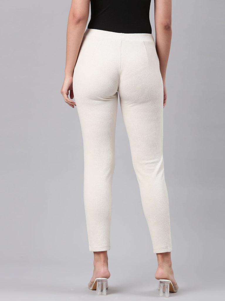 Team up the Solid Cream Super Stretch Jeggings with a tee or a top for a perfect day or night look. Made from cotton, polyester & elastane, this super stretch pair jeggings have a button up & zip fly closures, front slant pockets, back patch pockets & is of ankle length.
