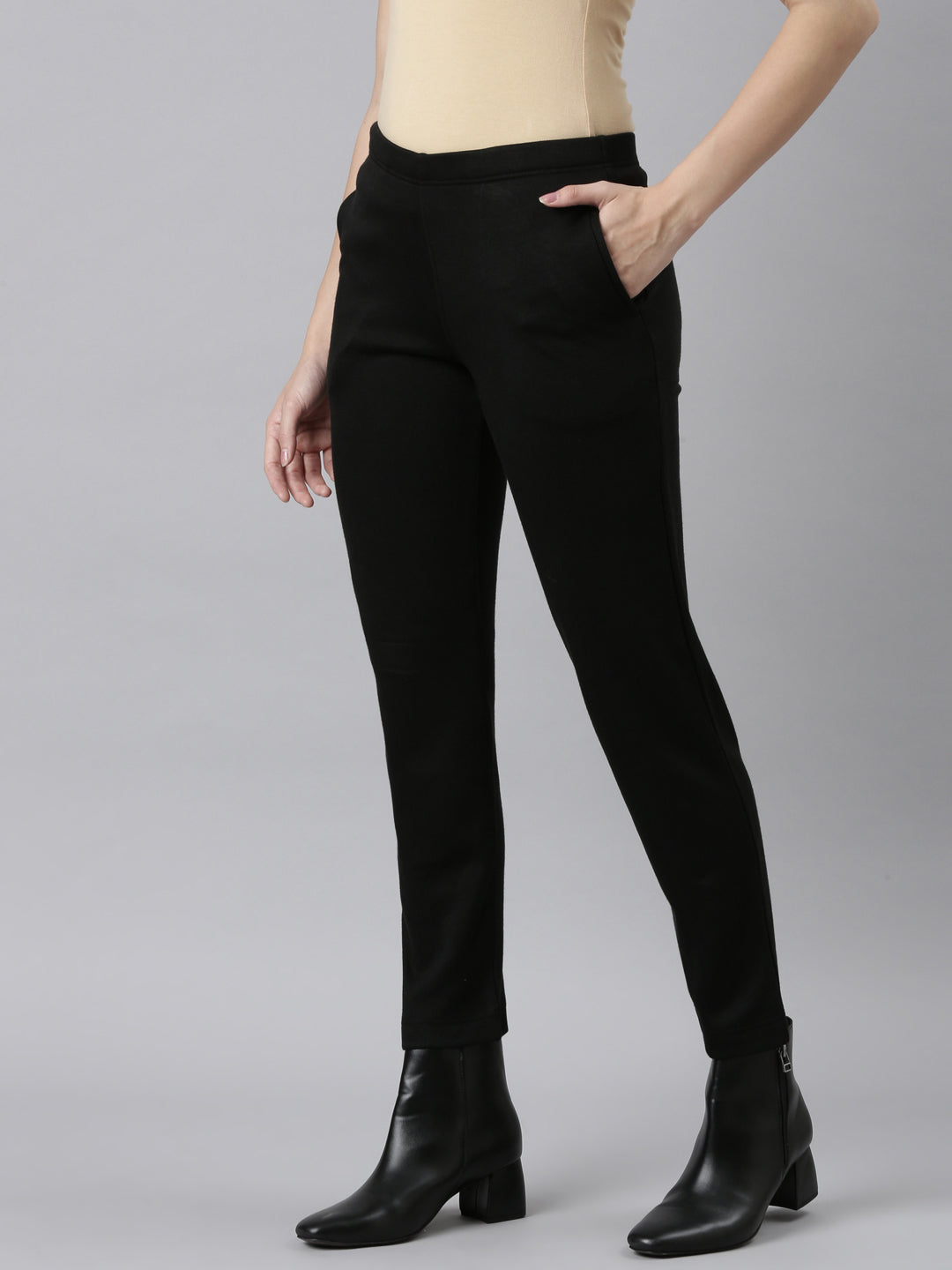 Freezing in your place? Don't fret, our Solid Black Ultra Warm Kurti Pant are perfcet to keep you warm & cozy. Made from Tencel, it has a elasticised waistband, slant pockets & a tapered fit.