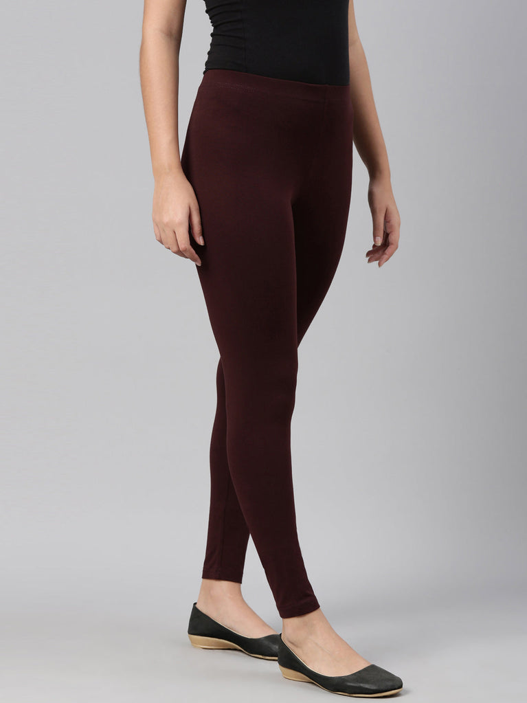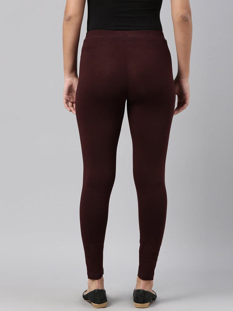 Dark Wine Cotton Stretch Ankle Length Leggings