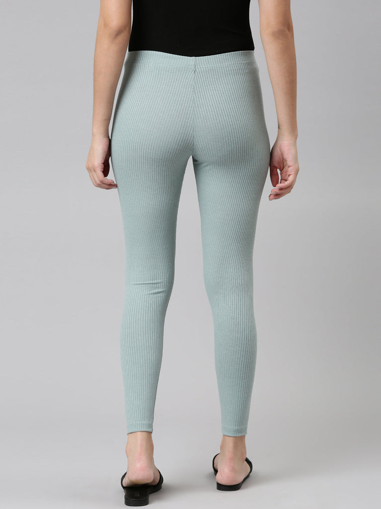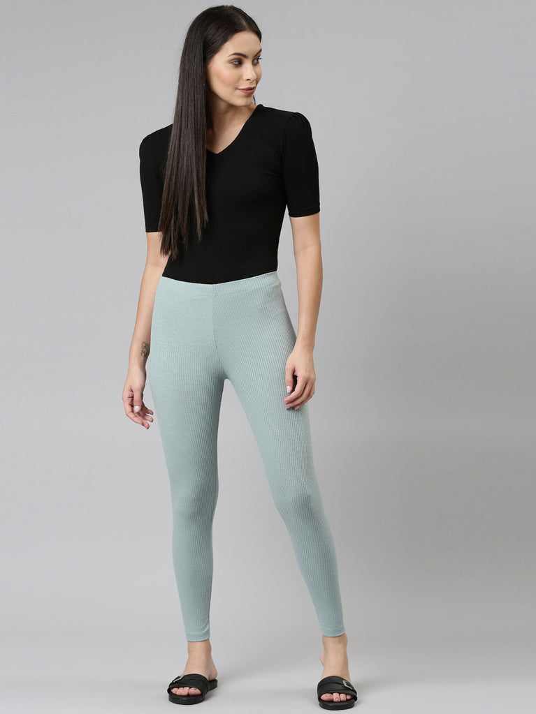 Go the ethnic way with our Solid Dusty Green Ribbed Leggings. Made from Rayon & Spandex it has a elasticised waistband, slim fit & is of ankle length
