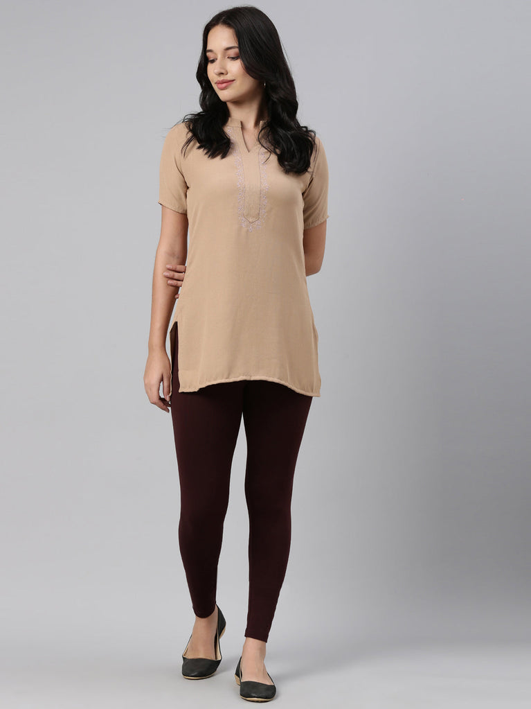 Complete any look, be it traditional or western with these Solid Dark Wine Leggings. Made from cotton & elastane, it has a elasticised waistband & has a slim fit.