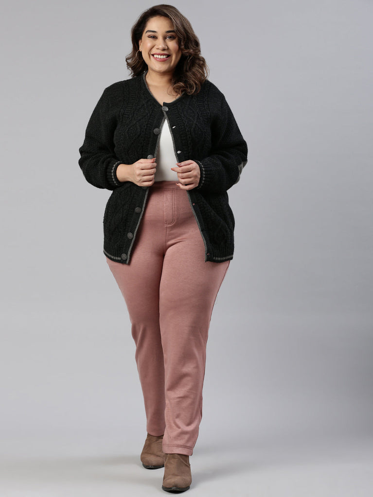 Stay warm this winter in the Solid Dusty Pink Mid Rise Ultra Warm Treggings. Made from Fleece, this mid rise slip on trousers with elasticised waistband & slim fit are perfect for board meetings or night out in the town. It has two side pockets with ankle length.