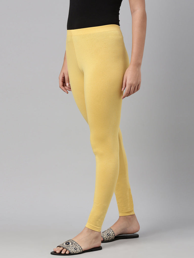 Bright Yellow Cotton Stretch Ankle Length Leggings