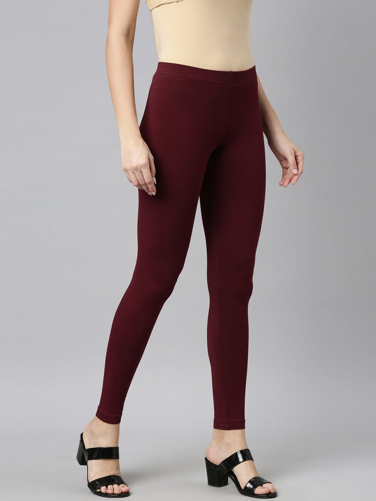 Bright Maroon Cotton Stretch Ankle Length Leggings