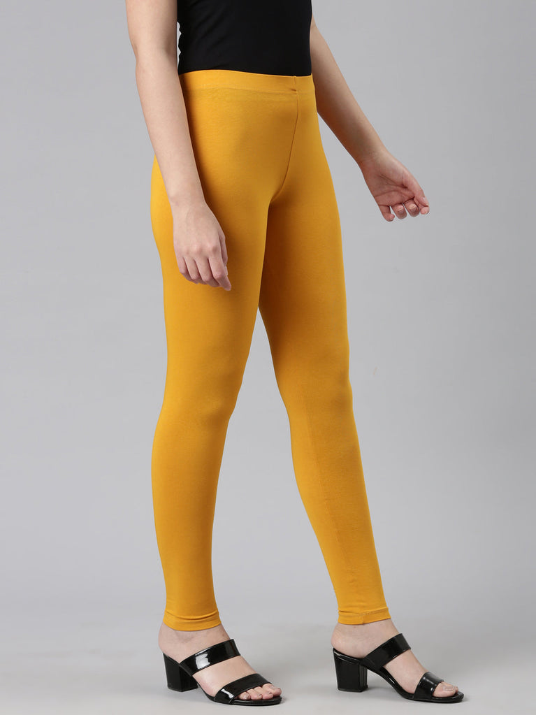 Bright Mustard Cotton Stretch Ankle Length Leggings