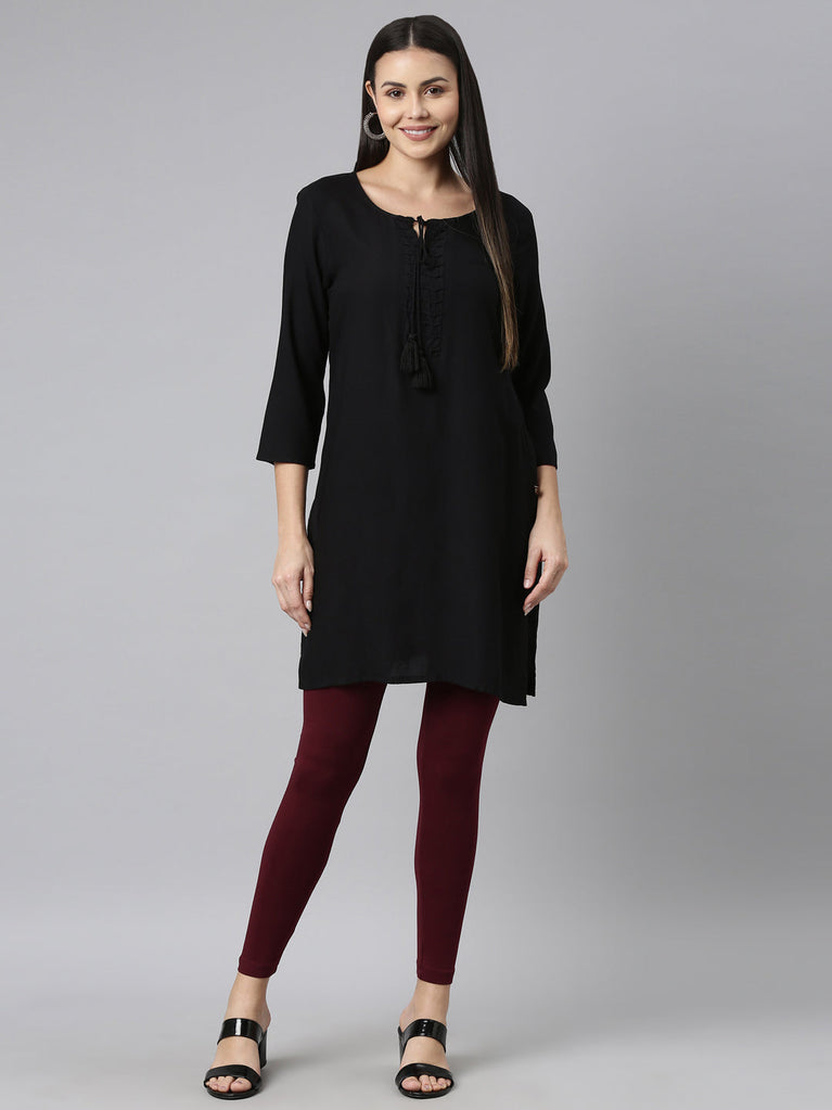 Complete any look, be it traditional or western with these Solid Bright Maroon Leggings. Made from cotton & elastane, it has a elasticised waistband & has a slim fit.